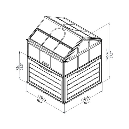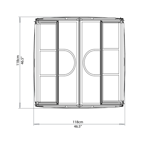 - Dimensions serre : L.118 x l.118 x H. 147 cm