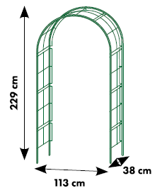 Avec des dimensions généreuses de 113 cm de largeur, 229 cm de hauteur et 38 cm de profondeur, cette arche offre suffisamment d’espace pour que vos plantes grimpantes comme les roses, les clématites ou les chèvrefeuilles s’épanouissent naturellement autour de la structure.