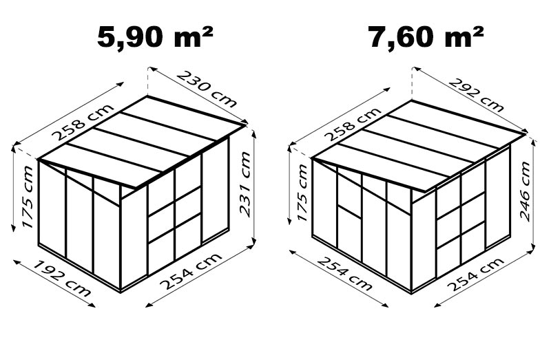 Hauteur à l'avant | 2,31 m pour la surface 5,90 m² 2,46 m pour la surface 7,60 m² |